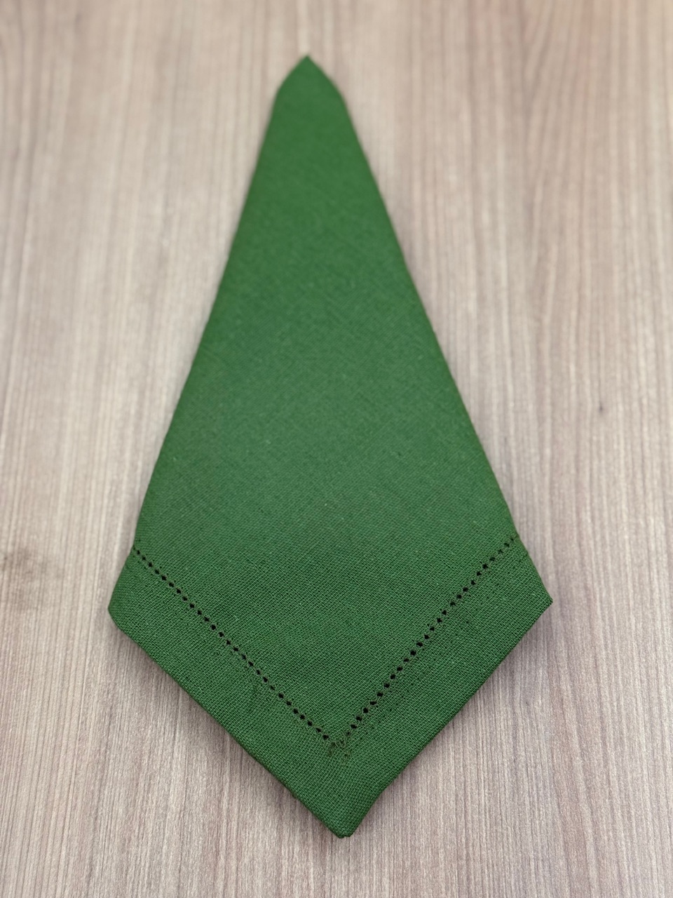 Leve sofisticação e charme à sua mesa posta com o Guardanapo Verde Oliva em Linho Misto com Bordado Ponto Ajour.