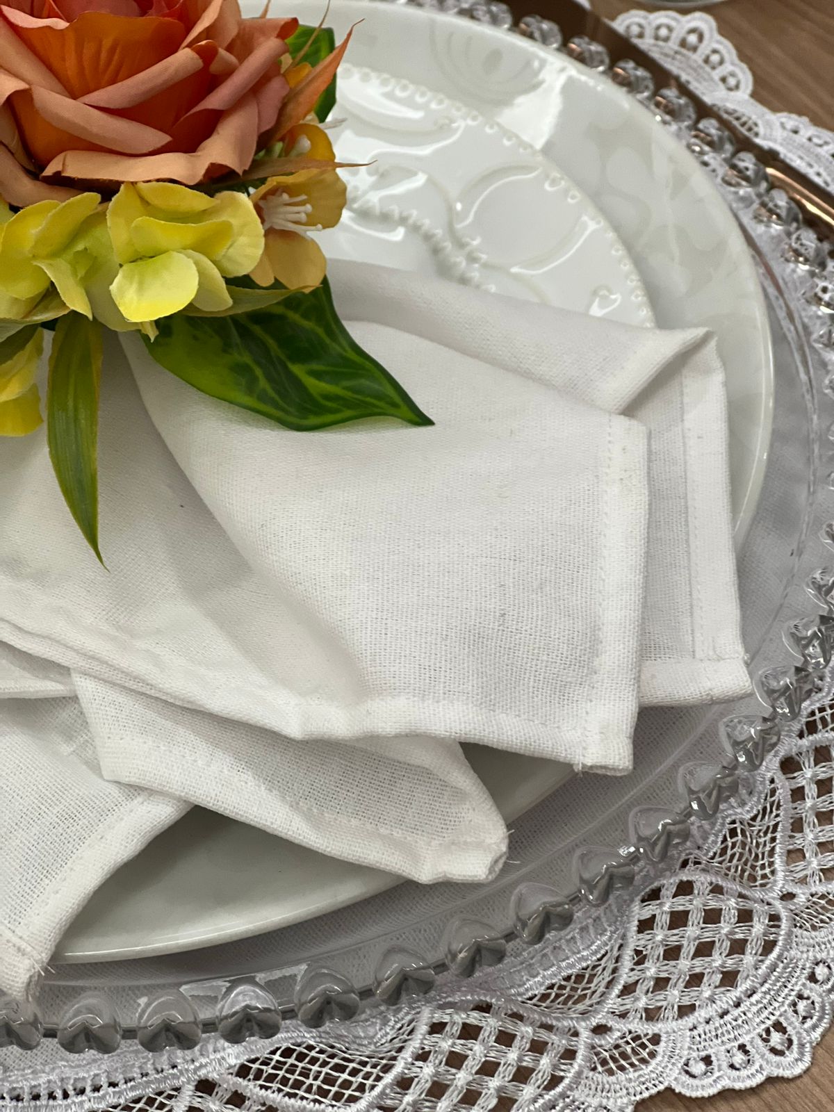 100 Unidades guardanapo Linho misto, acabamento com bainha para mesa posta
