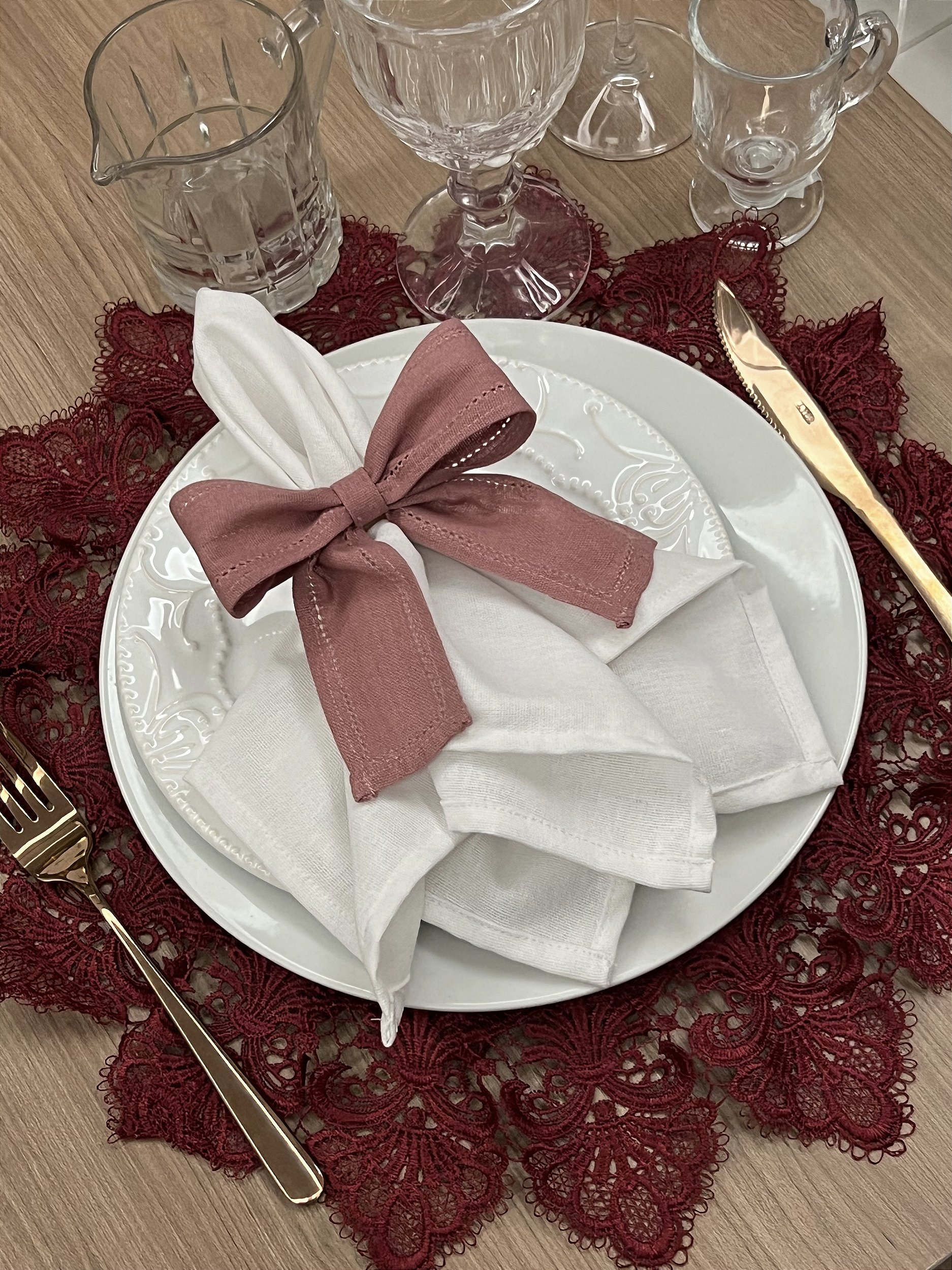Porta-guardanapo Laço com Ponto Ajour: Sofisticação e Delicadeza Adorne sua mesa com este charmoso porta-guardanapo. Confeccionado em tecido linho misto de alta qualidade, apresenta um delicado ponto ajour que proporciona um toque de elegância e romantismo. Ideal para ocasiões especiais ou para o dia a dia, adicionando um toque pessoal à sua decoração.