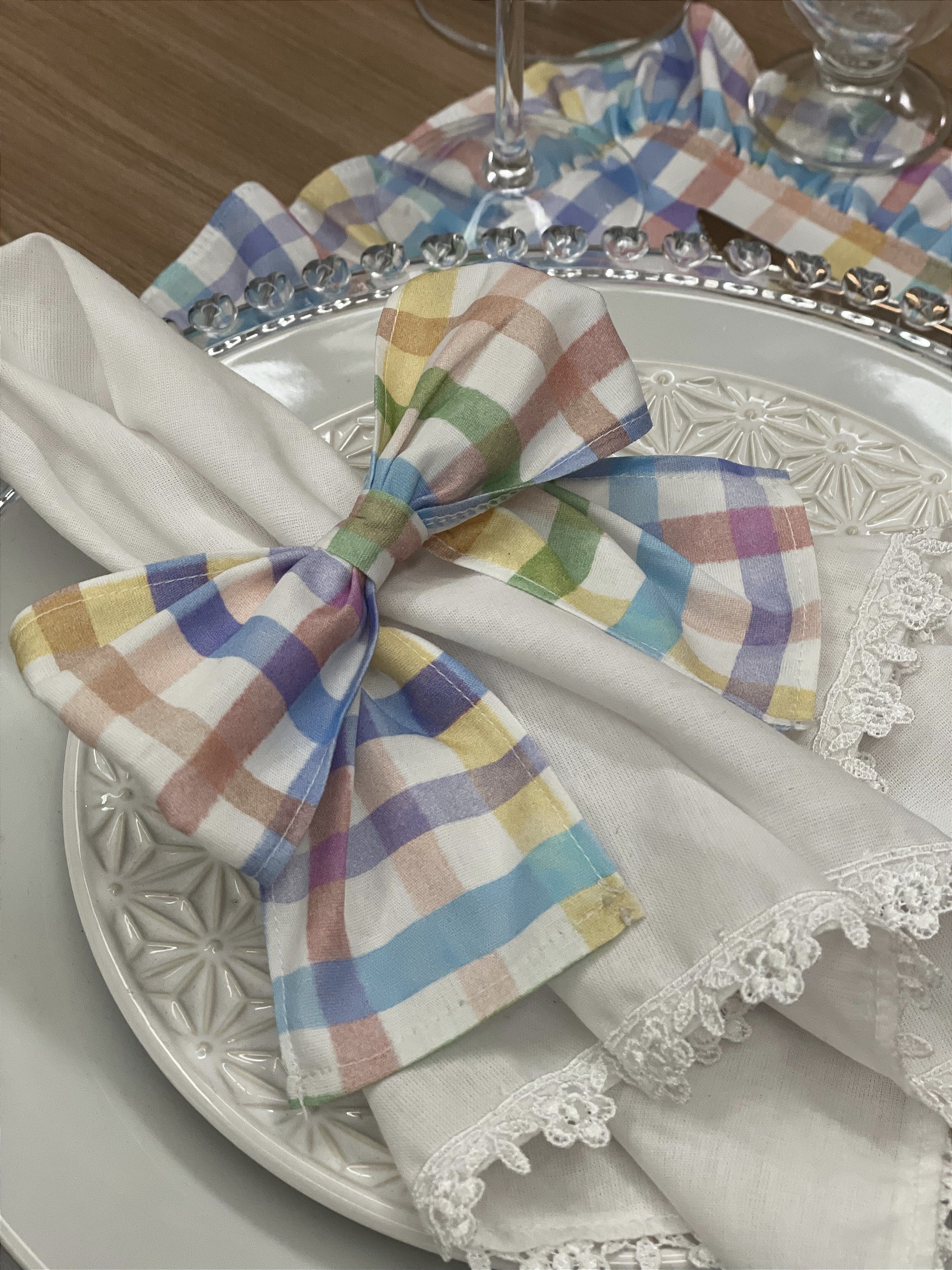 O porta-guardanapo com laço de tecido xadrez colorido é um acessório charmoso e versátil para compor a mesa em diversas ocasiões. Com seu design alegre e artesanal, ele adiciona um toque de cor e estilo à decoração, sem abrir mão da praticidade.