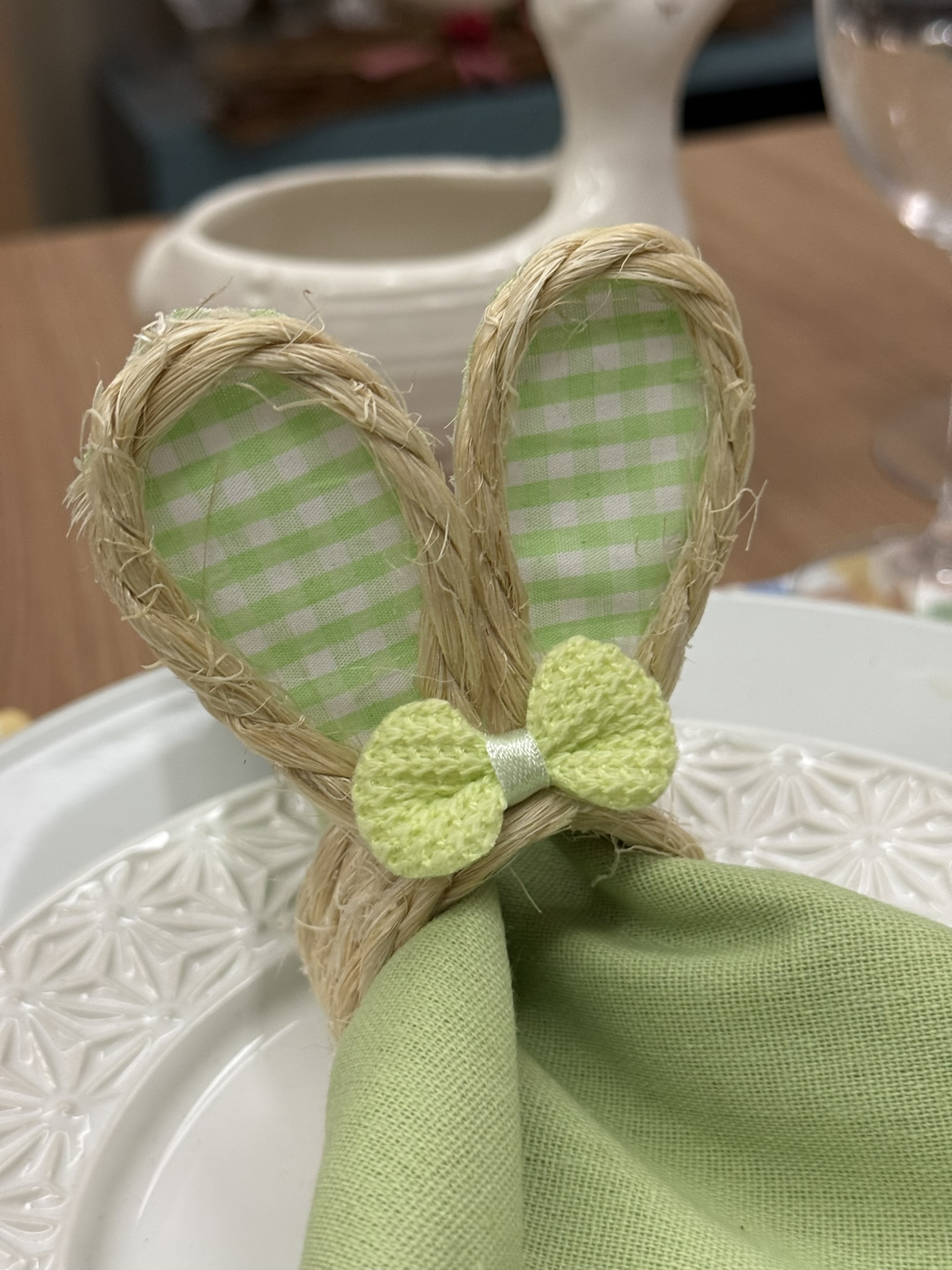 O Porta-Guardanapo Orelha de Coelho é um acessório encantador que transforma a mesa posta em um cenário delicado, lúdico e acolhedor. Produzido artesanalmente em corda de sisal, ele possui formato de orelhas de coelho, trazendo charme e personalidade às composições, especialmente em mesas temáticas de Páscoa.